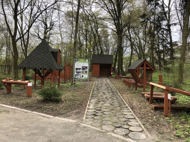 Заповідну територію гармонійно доповнює створені з власного проєкту системи водовідведення стічних вод з вулиці Героїв Оборони. Велика кількість найрізноманітніших скульптур, серед яких можна побачити навіть доісторичних тварин: сніжну людину, динозаврів або ж родину мамонтів. Гуляючи територією Ботанічного саду можна побачити декілька еко-класів, де для студентів у теплу пору проводяться навчальні заняття.