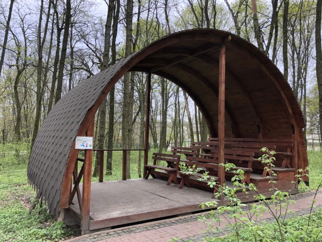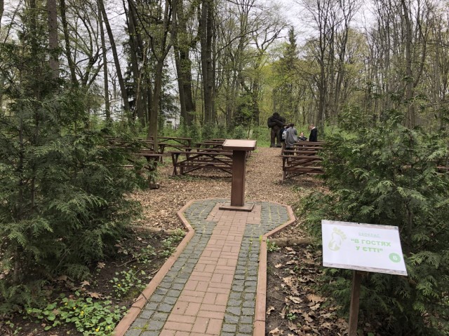 Ще однією цікавою локацією є альтанка Пам’яті. Кілька років тому Ботанічний сад втратив одне із найстаріших дерев. Тоді ж виникла ідея зробити з пенька вікового дерева стіл, а поруч облаштувати меморіальний стенд із залишками гільз та снарядів, знайдених на території Ботсаду після завершення ІІ Світової війни.