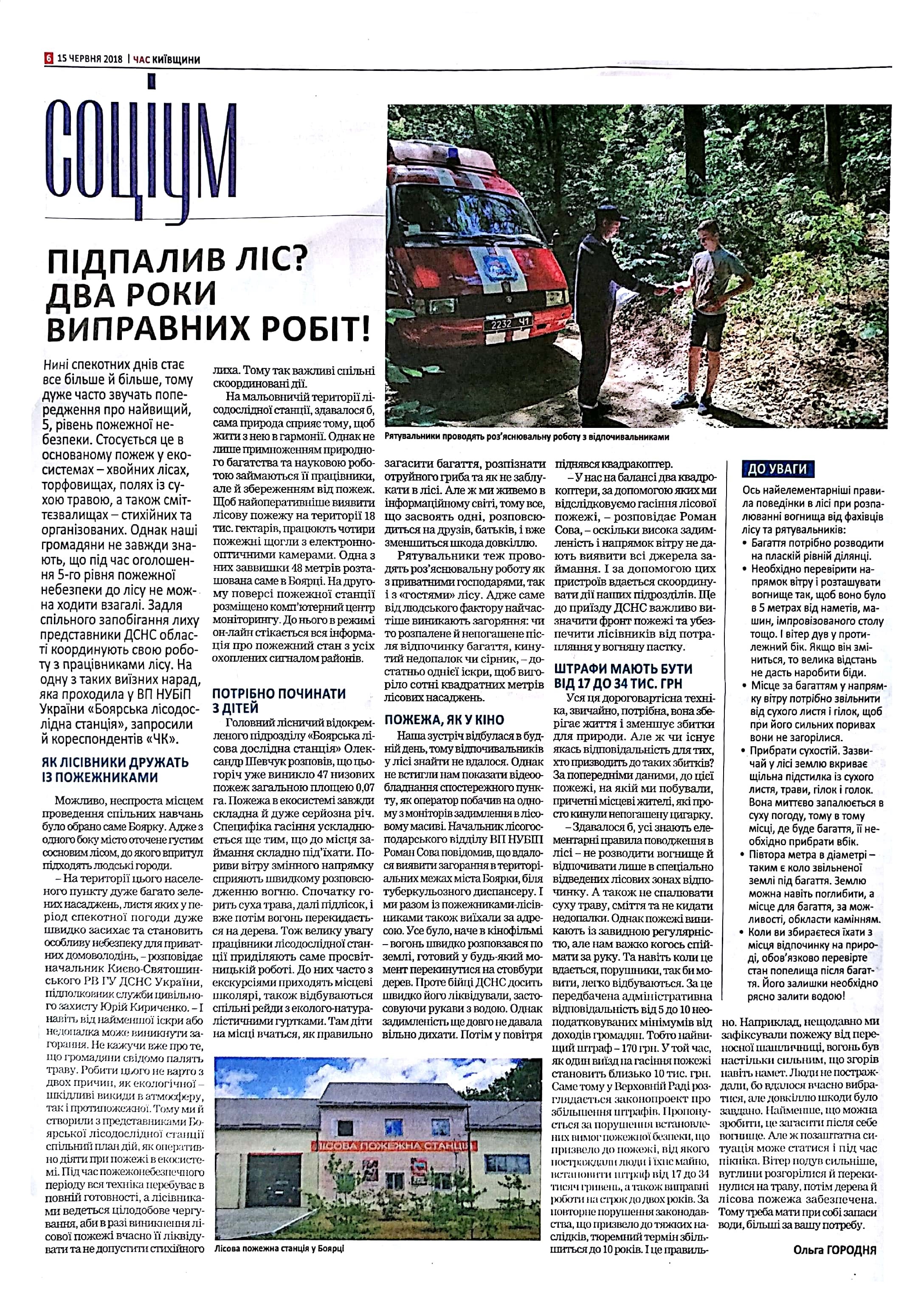 Газета "Час Київщини" стаття "Підпалив ліс два роки виправних робіт!" Ольга Городня
