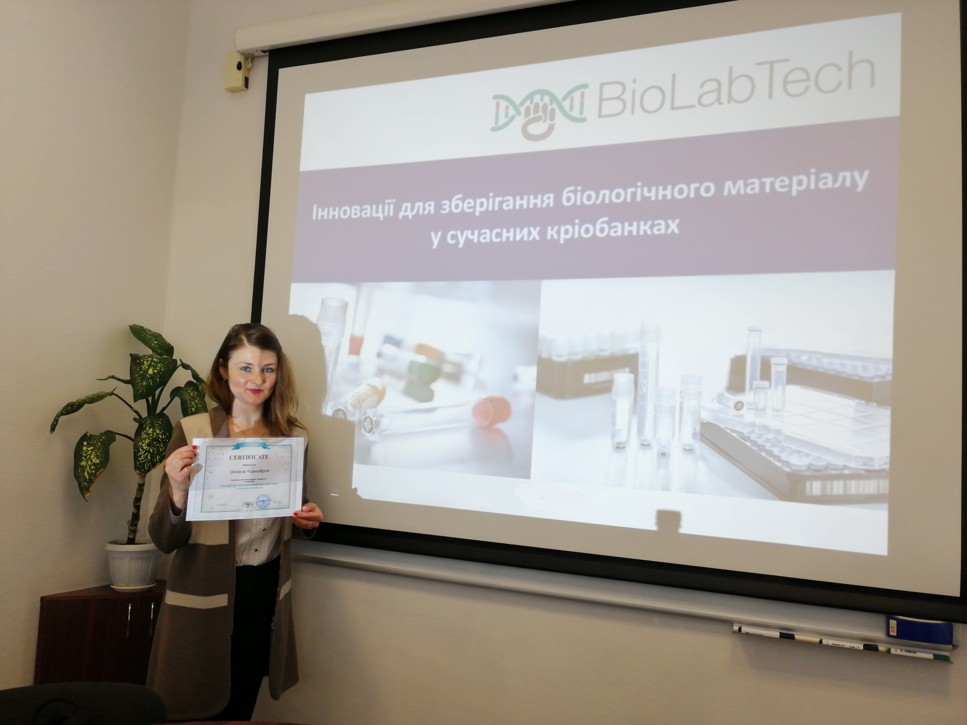 16 травня 2019 року співробітники BioLabTech, Ltd провели семінар на тему: «Інновації для зберігання біологічного матеріалу у сучасних кріобанках». Серед учасників семінару – завідувач науково-дослідної лабораторії біотехнології рослин ВП НУБіП України «Боярська ЛДС Оксана Чорнобров.