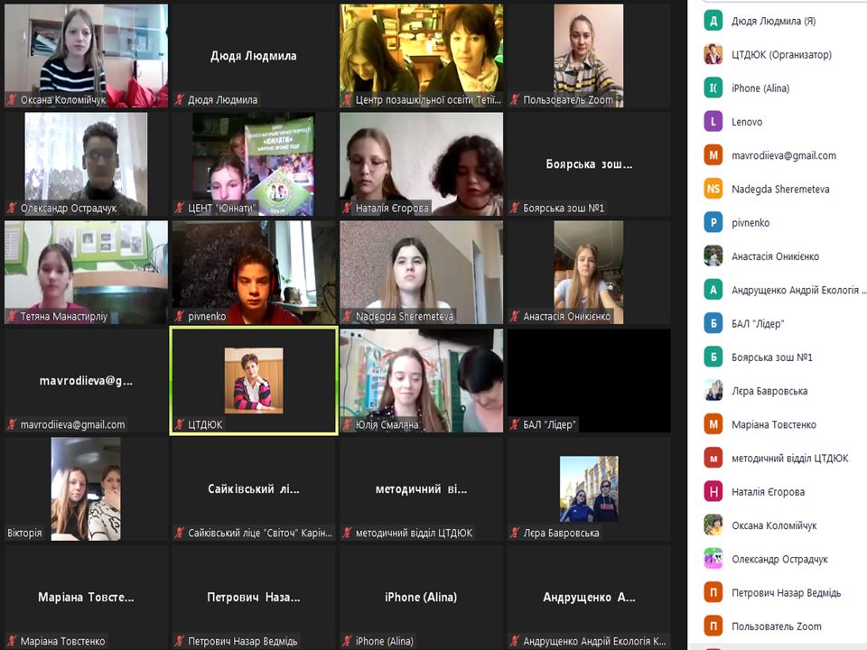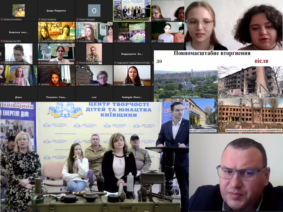 19 квітня 2023 року в онлайн-студії КЗ КОР «Центр творчості дітей та юнацтва Київщини» відбувся обласний екологічний форум «Київщина екологічна: злочини війни». Учасниками форуму стали діти та учнівська молодь закладів загальної середньої та позашкільної освіти Київської області, які презентували власні пошукові проєкти щодо екологічних злочинів, скоєних на території Київщини внаслідок російської агресії.