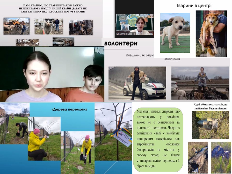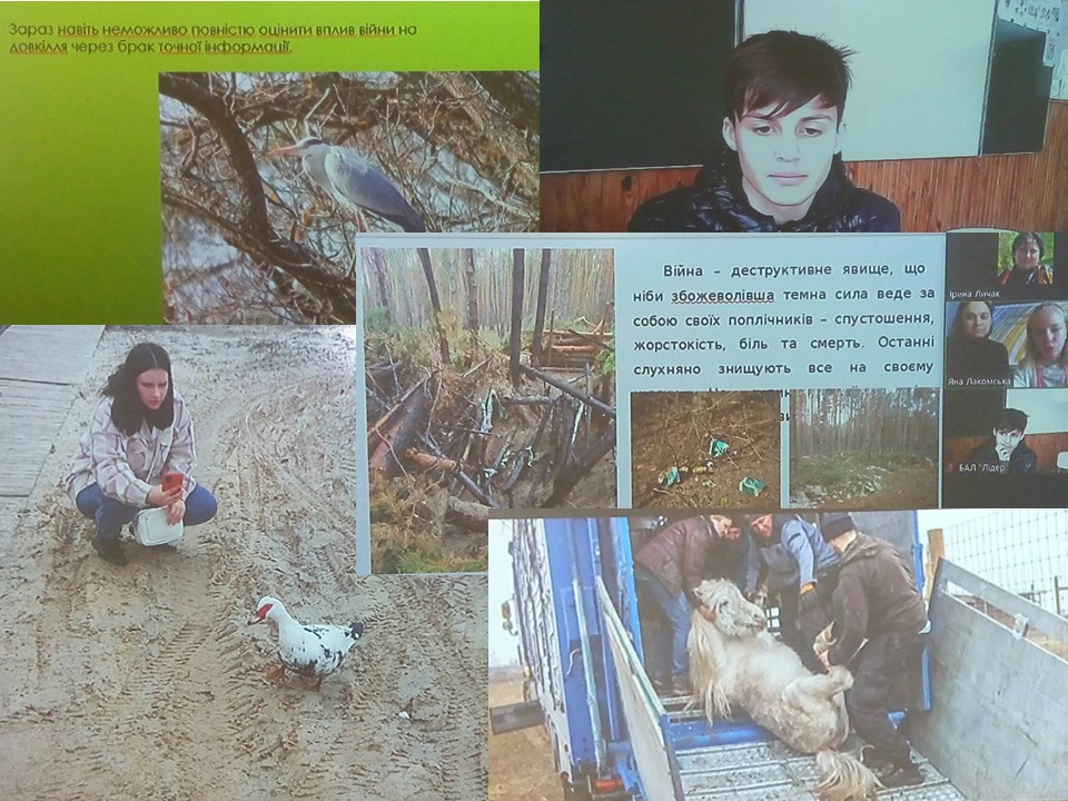 У відеосюжетах та презентаціях учасники форуму продемонстрували як війна впливає на усі компоненти українських екосистем: вона забруднює воду та повітря, руйнує ґрунти, спалює ліси й унікальні заповідні території, та вбиває тисячі тварин. Тим самим учнівська молодь привернула увагу громадськості до екологічних проблем, спричинених бойовими діями.