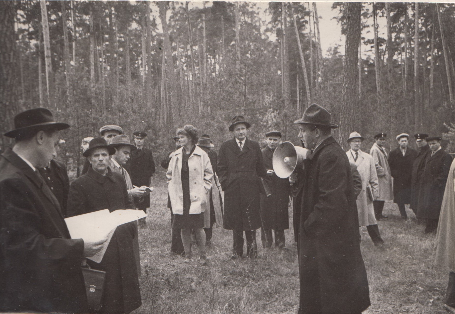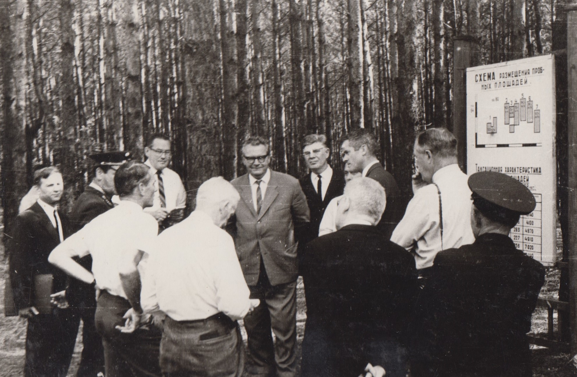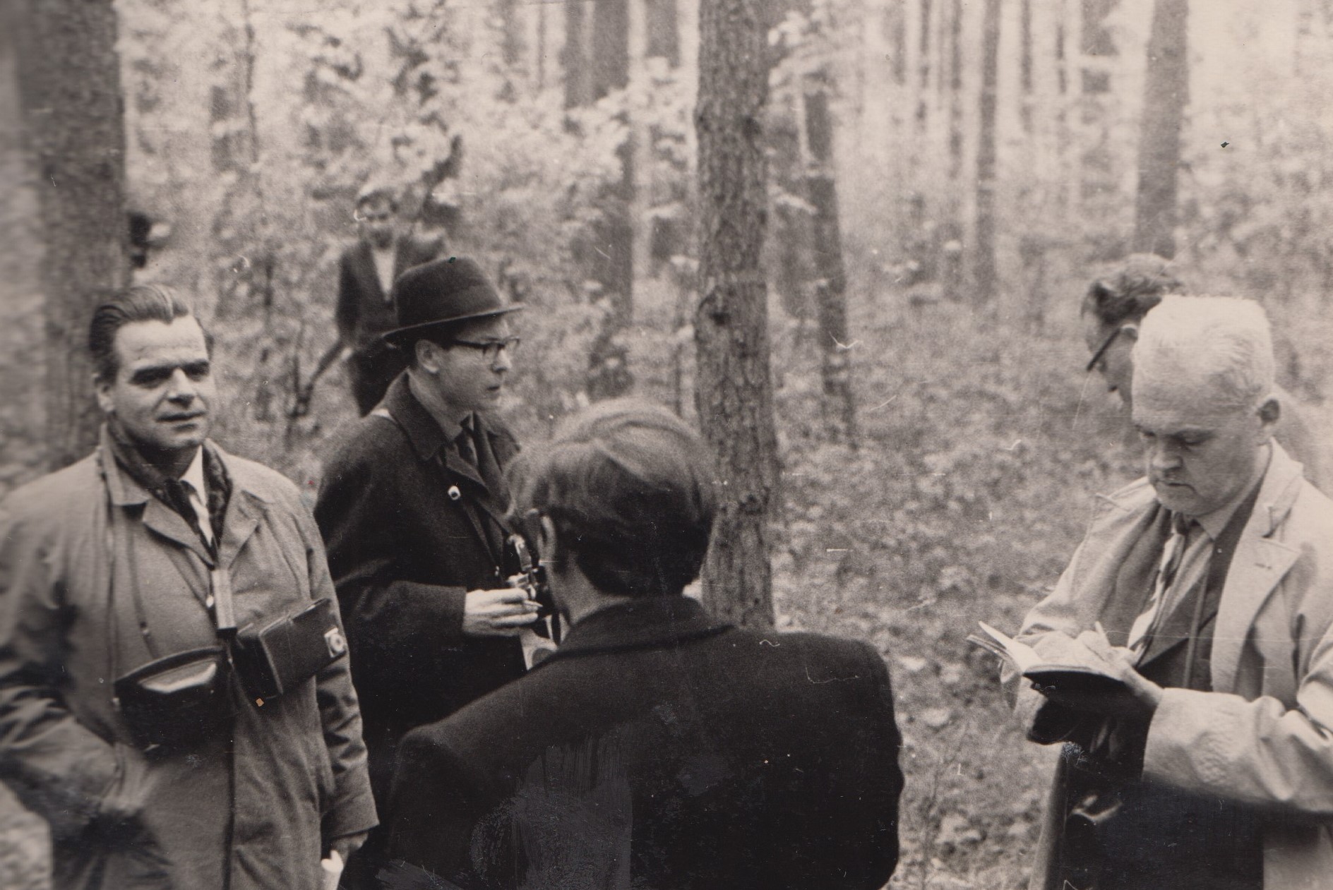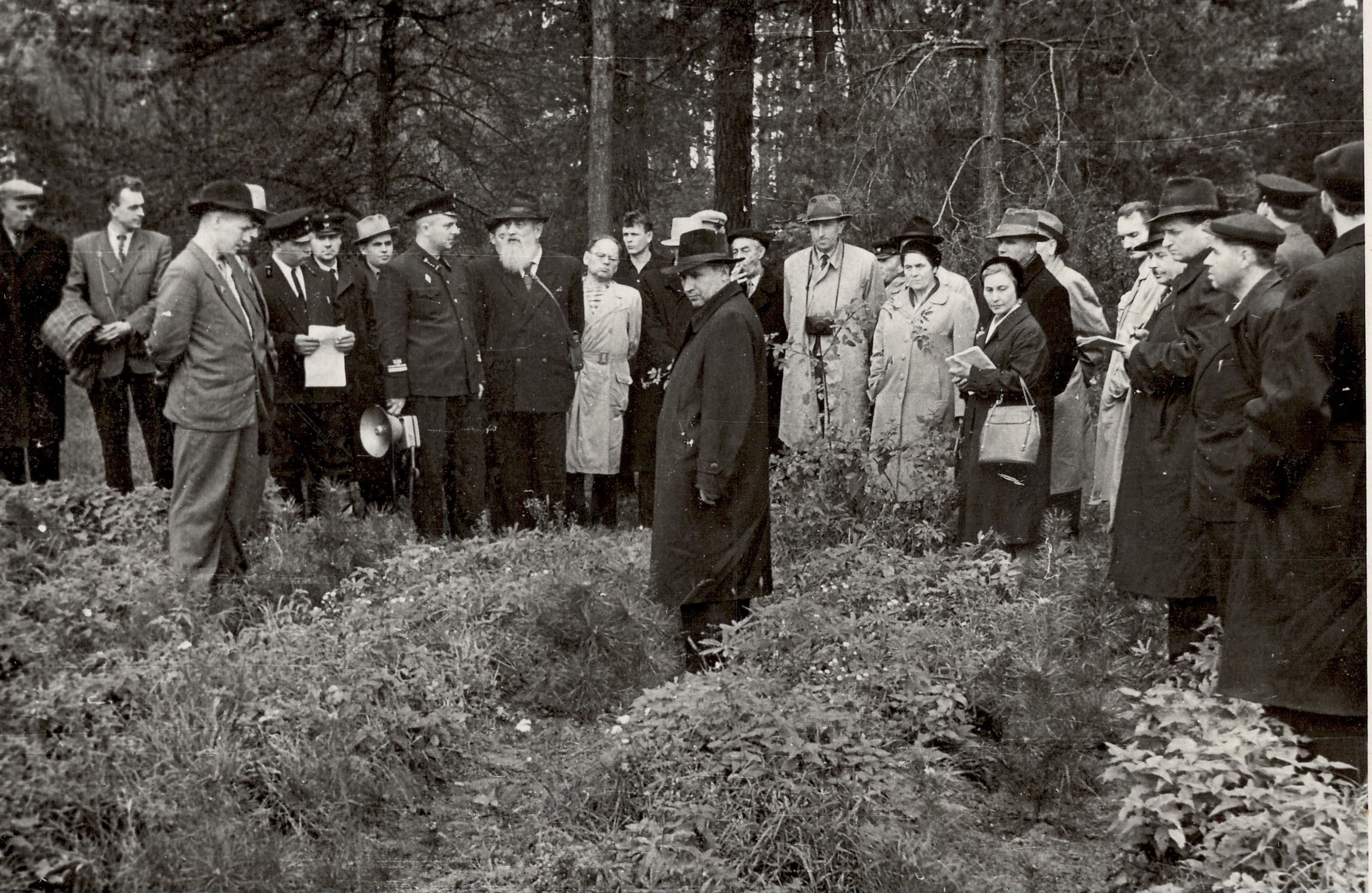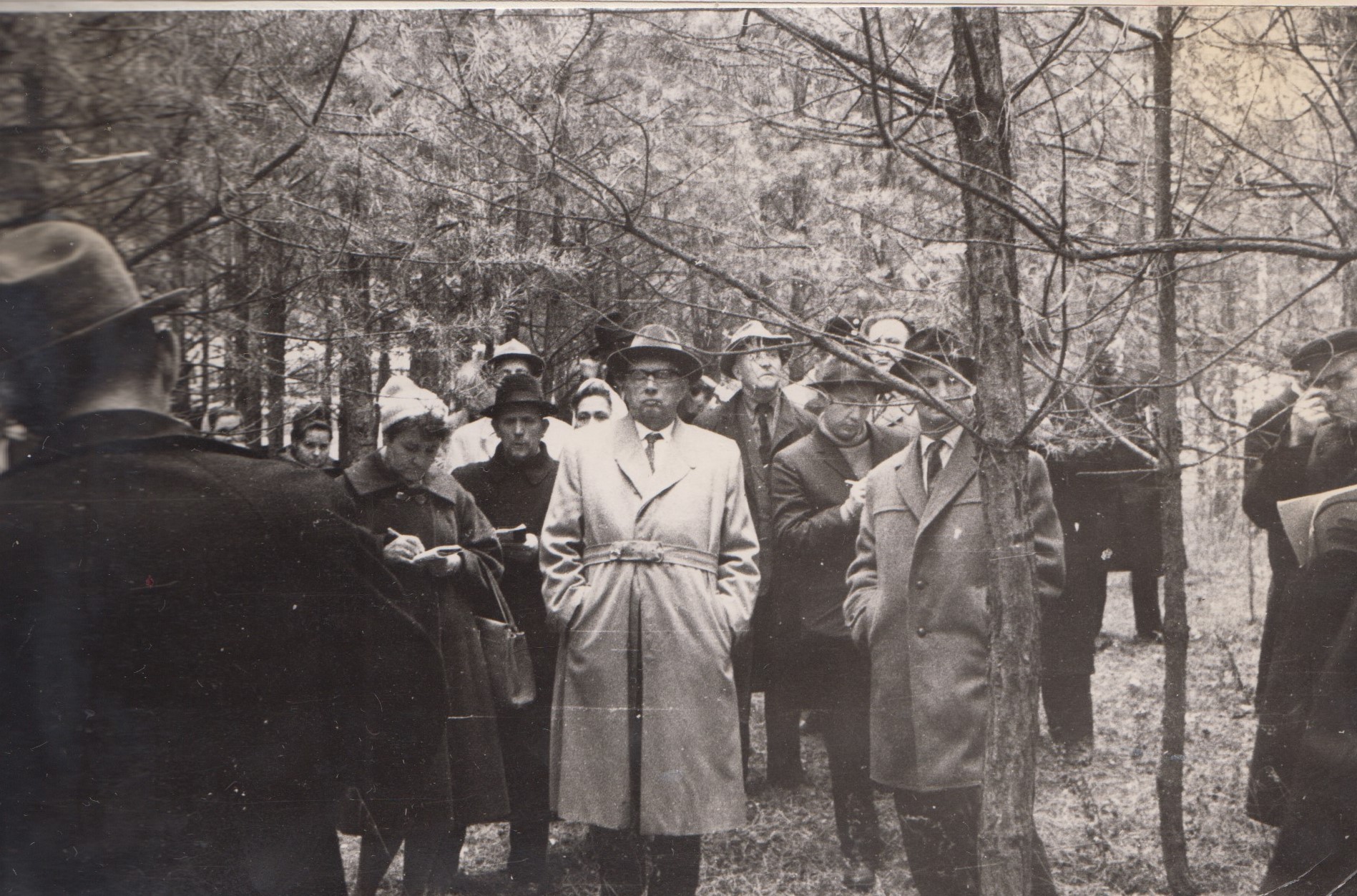 Фото 19. Обмін думками учасників конференції на дослідній ділянці сприяння природньому поновленню (10.10.1963 р.)