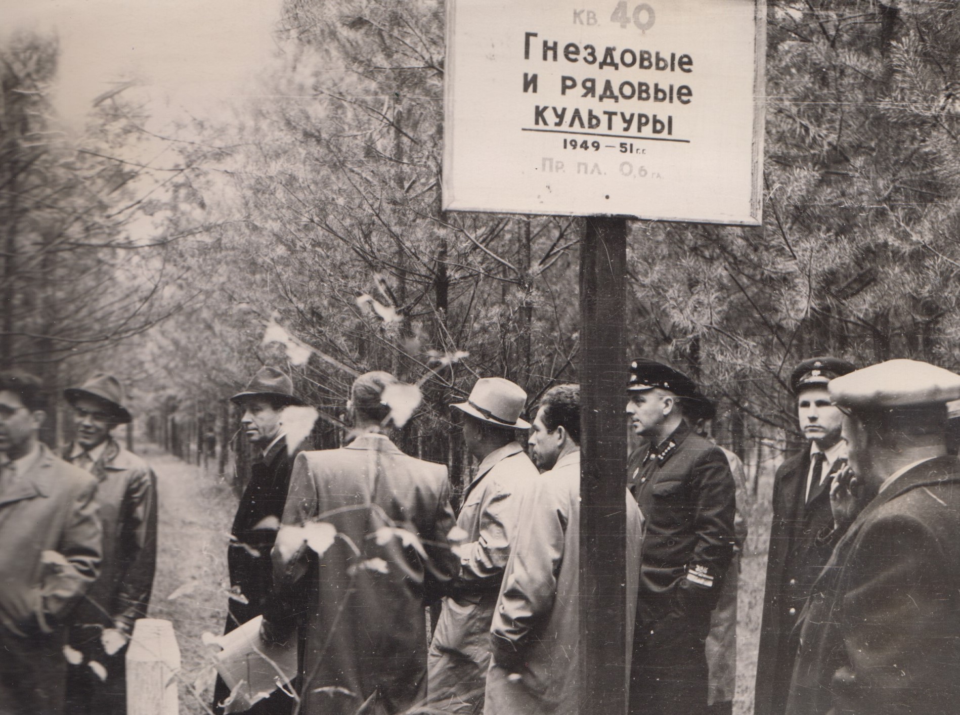 Фото 10. Огляд культур сосни звичайної в Плесецькому лісництві під керівництвом проф. Б.Й. Логгінова (1962 р.)
