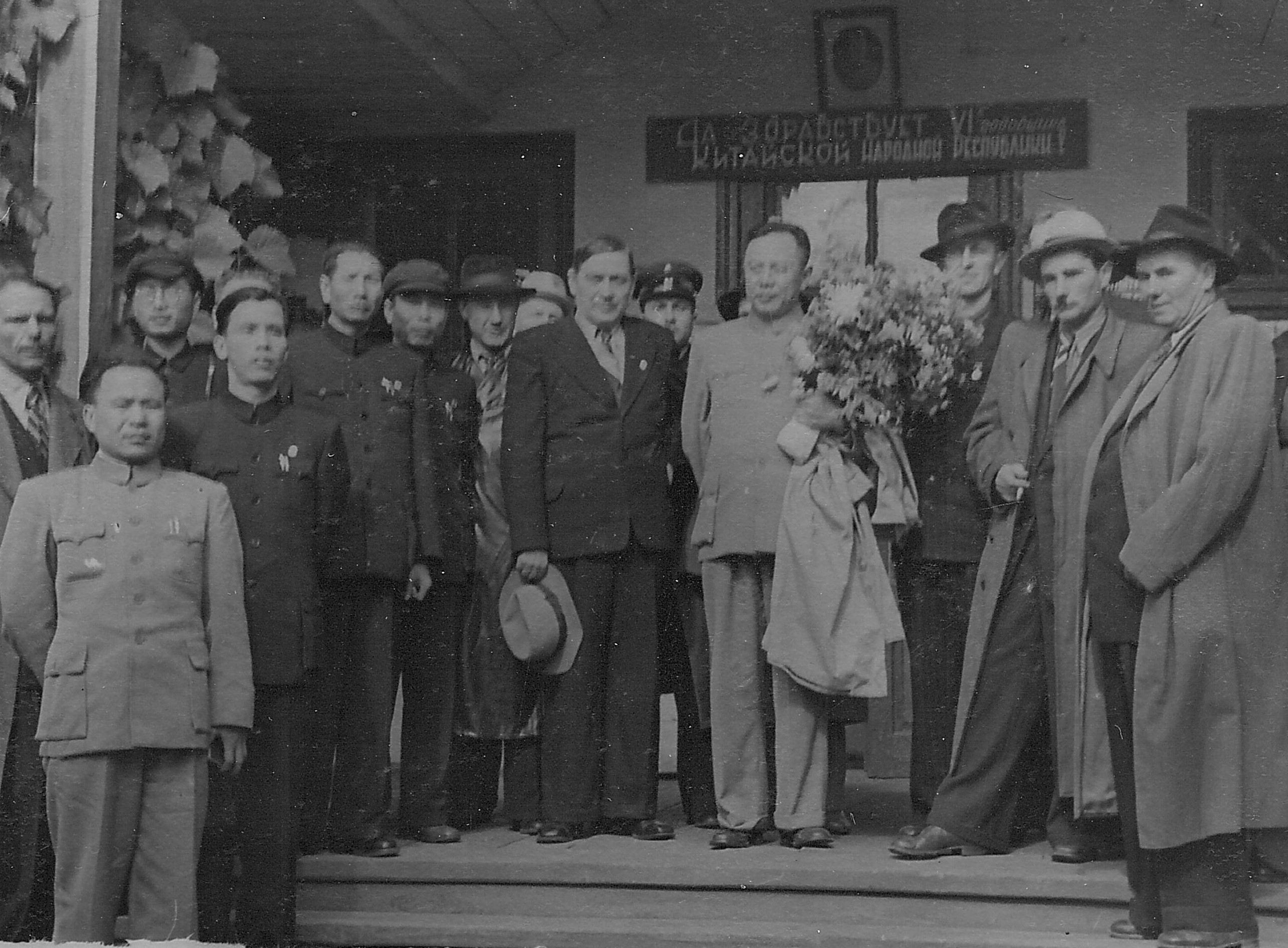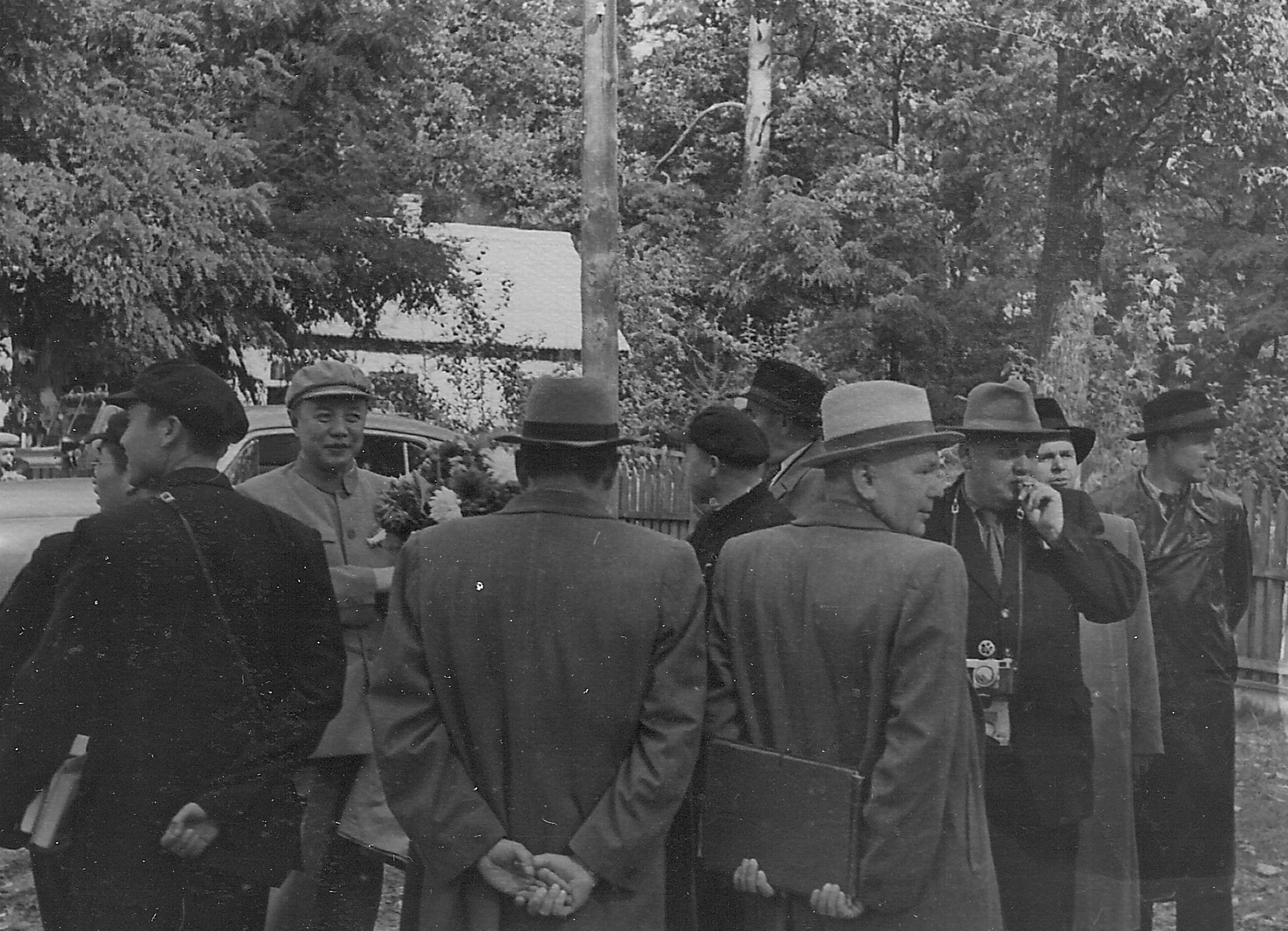 Фото 3. Делегація з Китаю в Дзвінківському лісництві разом із начальником управління лісорозведення Міністерства лісового господарства Китаю Чжан Чжао (1955 р.)