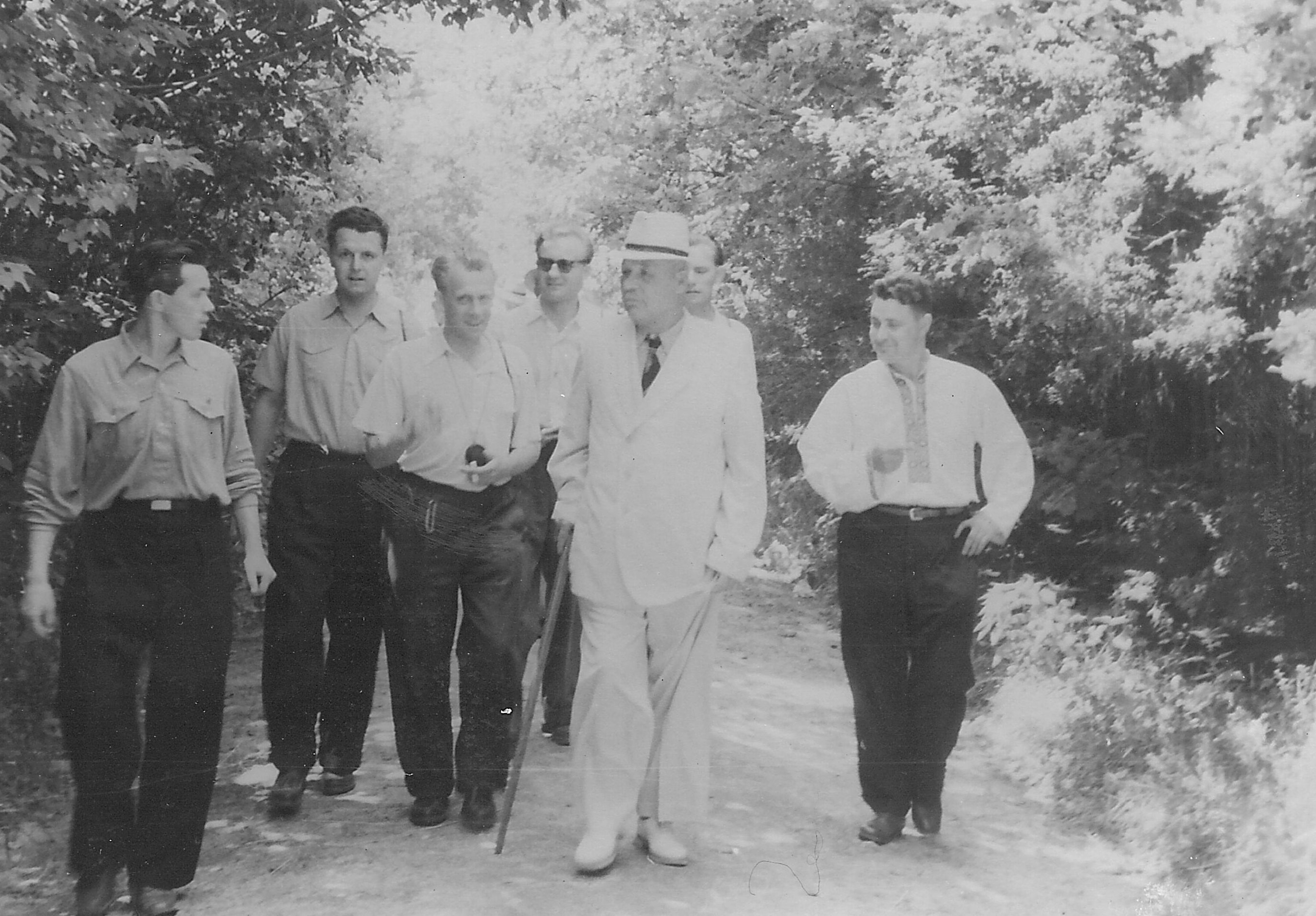 Фото 6. Делегація з Німеччини в Голосіївському лісництві (1955 р.)