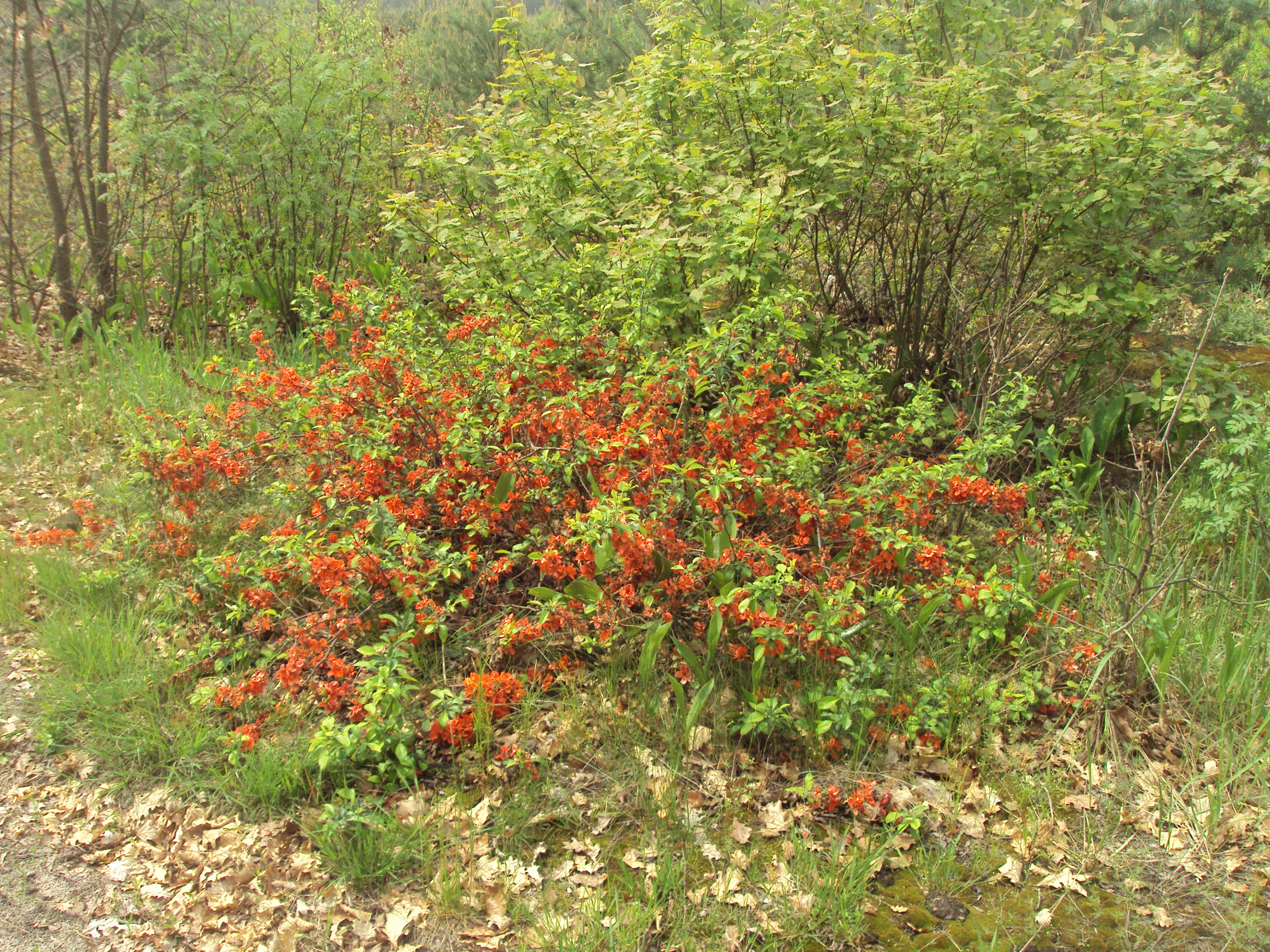 Іншим аспектом слугувало виявлення чужорідних рослин, зокрема видів-інтродуцентів, а також інвазійних видів – тих, що «втікають» з культури і спонтанно поширюються природними територіями. У цьому плані наочним прикладом стало поширення дослідженими лісовими масивами розрив-трави дрібноквіткової (Impatiens parviflora DC.), зважаючи на її сучасну фітоценотичну роль у структурі корінних та похідних лісових угруповань це був красномовний приклад майбутнім господарникам українських лісів до яких наслідків для навколишнього природного середовища може призвести неконтрольована інтродукція чужорідних рослин. Окрім того, на території Плесецького лісництва в околицях с. Дзвінкове виявлено види-інтродуценти, що мають цінні господарські властивості, серед них хеномелес або айва японська (Chaenomeles japonica (Thunb.) Lindl. ex Spach) – декоративна та харчова рослина, яку застосовують під час лісовідновних заходів.