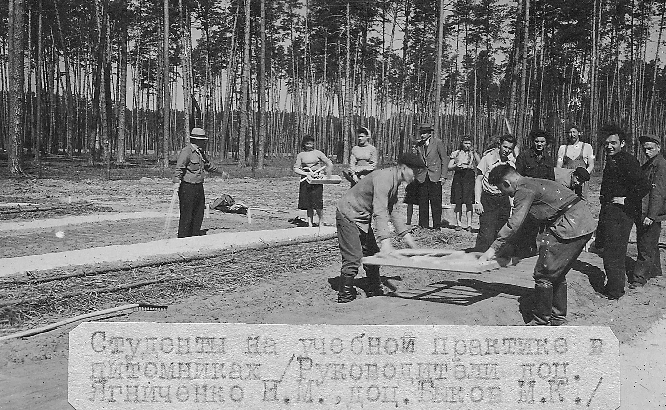 Фото 14. Навчальна практика студентів з механізації лісогосподарських робіт, 1955 р.