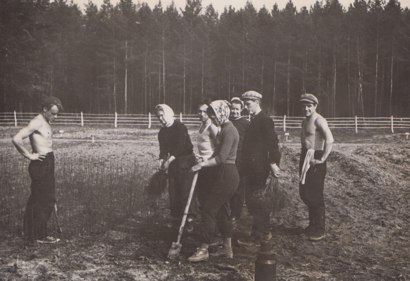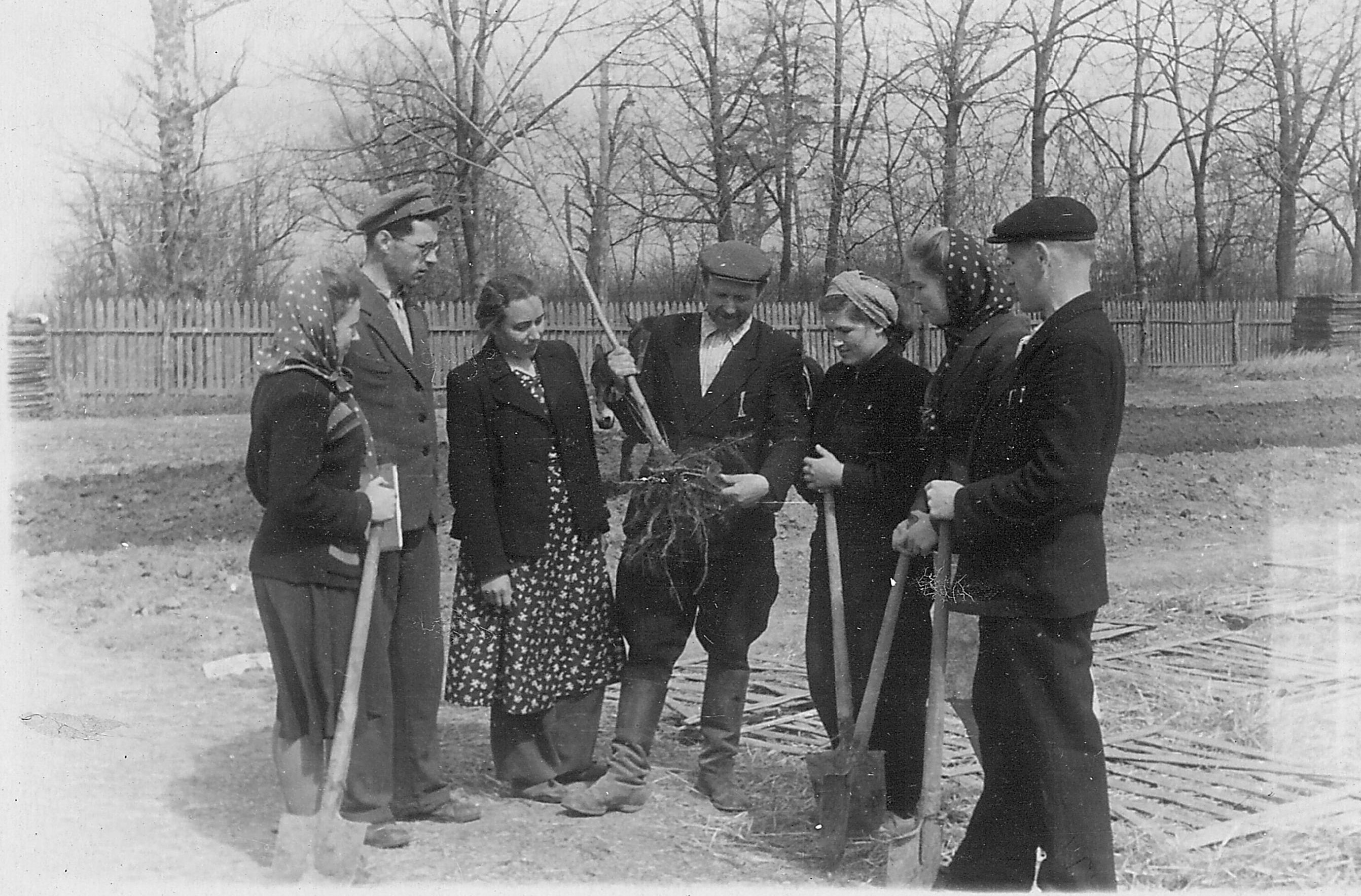 Фото 1. Студенти на практиці у лісовому розсаднику, 1948 р.