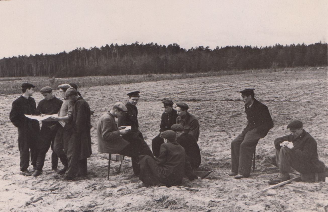 Фото 11. Бригада студентів на відпочинку під час обідньої перерви, 1952 р.