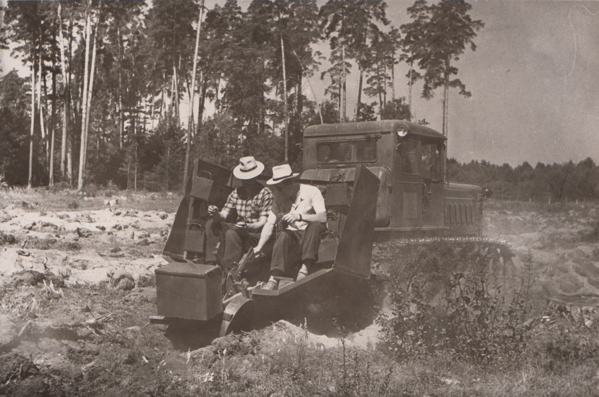 Фото 25. Посадка студентами лісових культур лісосадильною машиною СЛН-2, 1964 р.