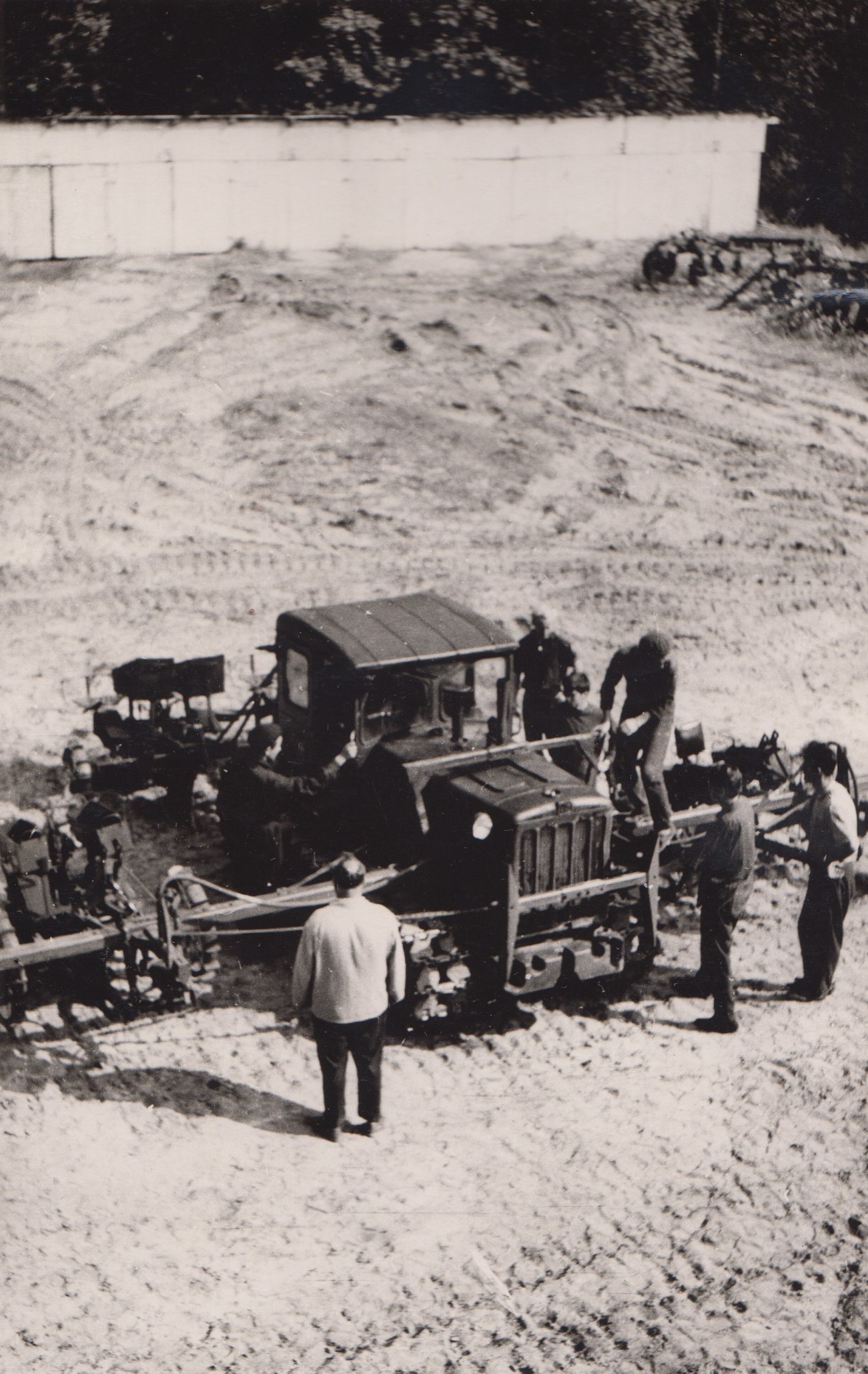 Фото 26. Агрегатування студентами лісосадильних машин під час практики з механізації, 1966 р.