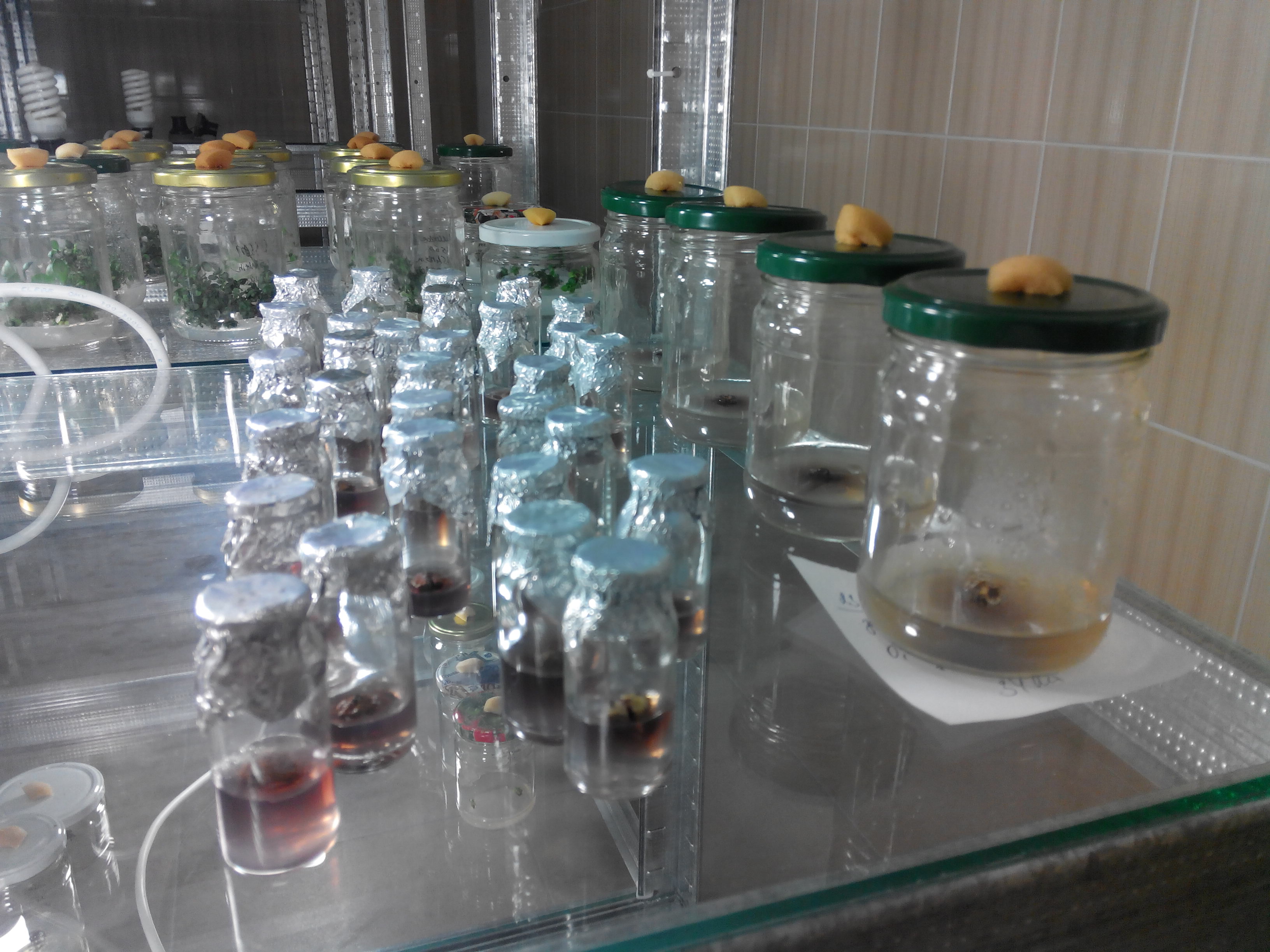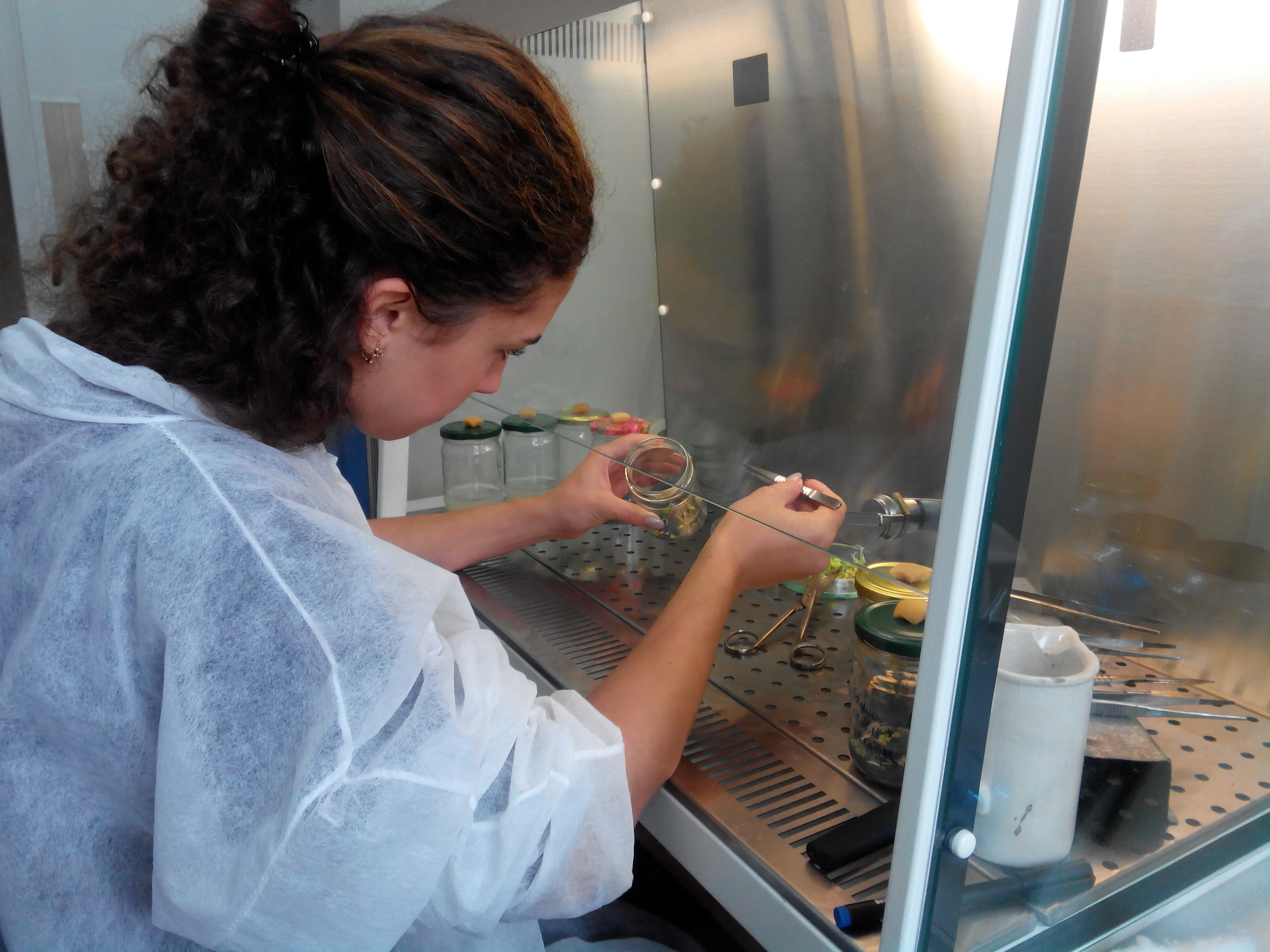 Зокрема, упродовж 22−24 жовтня Анастасія під керівництвом завідувача лабораторії Чорнобров Оксани опановувала технологію введення у культуру in vitro різних типів експлантатів дуба звичайного. Усі операції проводили у приміщенні для ізолювання і субкультивування тканин рослин («операційна»). Також студентка оволоділа методами досягнення необхідного класу чистоти приміщення; способами добору і підготовки рослинного матеріалу; правилами роботи в ламінарному боксі; методами стерилізації інструментів. Ми апробовували різні режими й методики стерилізації рослинного матеріалу, експериментально підібрали стерилізуючі речовини, їх концентрації та експозиції. За цей термін було введено в культуру in vitro 100 експлантатів рослин на завчасно приготовлене стерильне живильне середовище за прописом DKW. Нині рослинний матеріал вирощуємо у культуральному приміщенні за строго визначених умов in vitro.