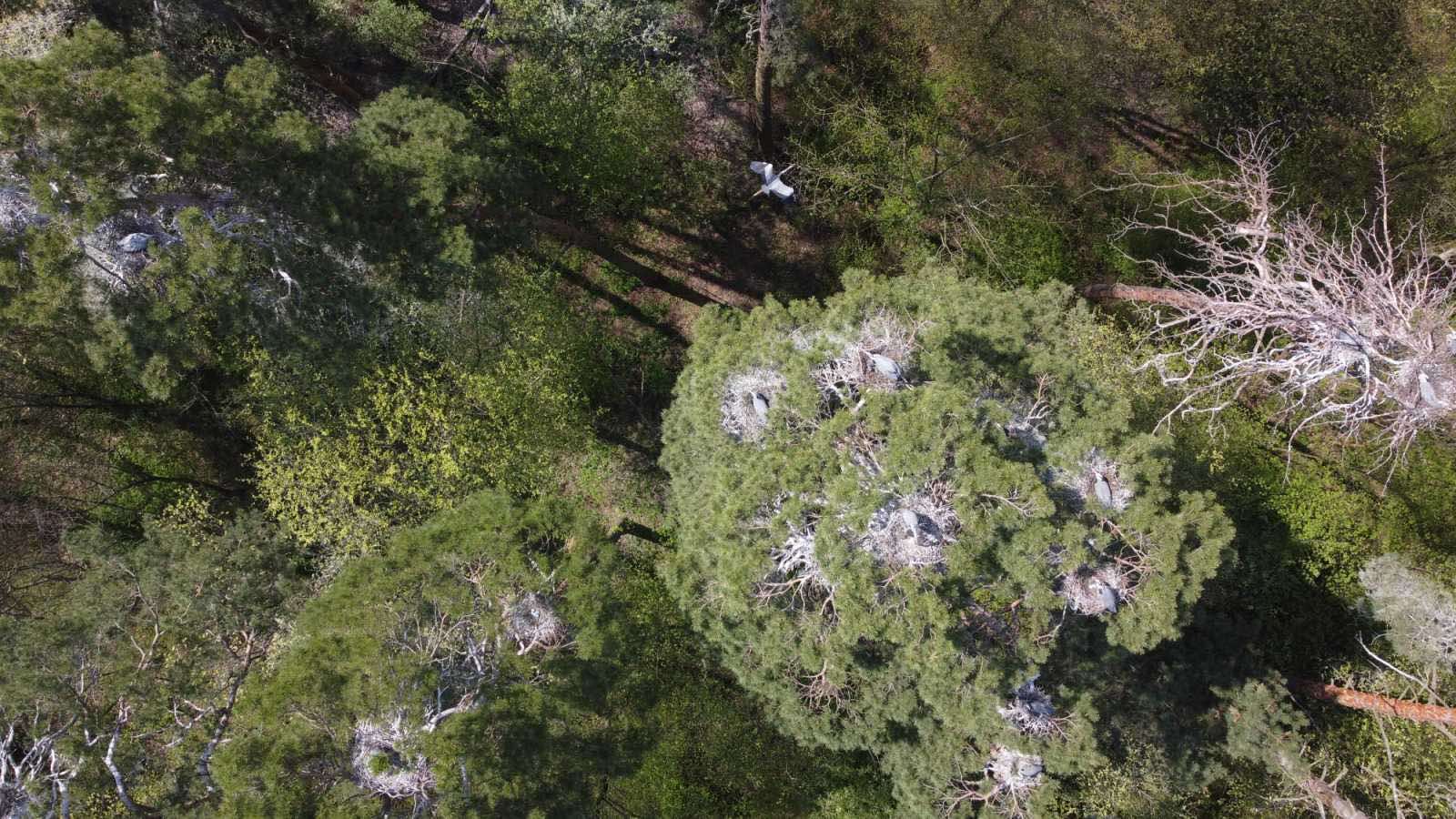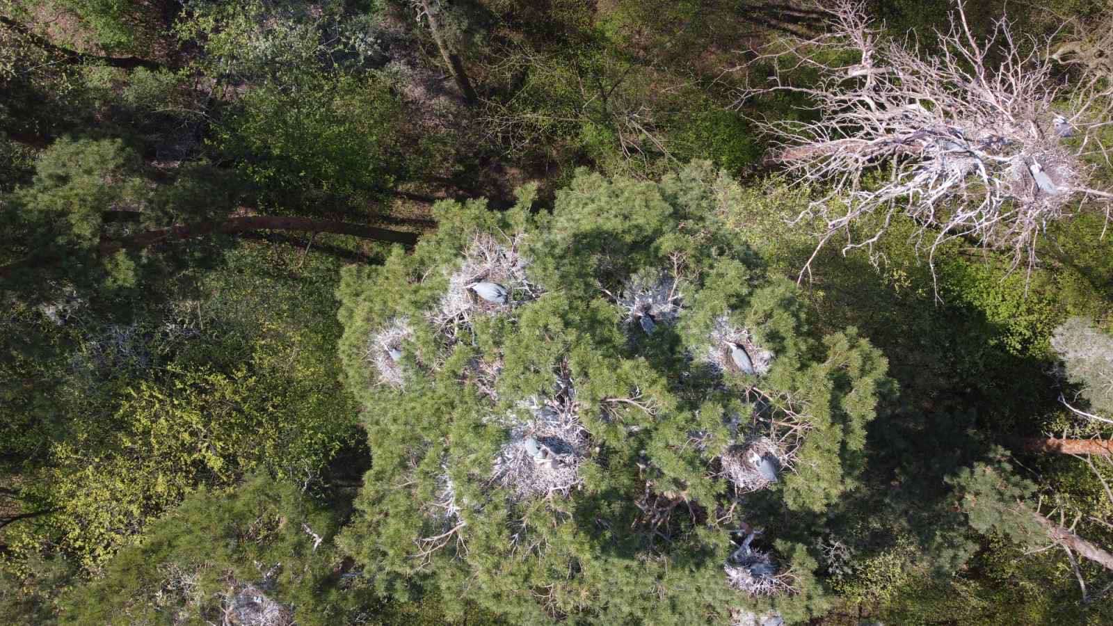 Чаплі гніздяться, в кронах соснових дерев на висоті 28-33 метри від землі, звідки вони літають на кормові ділянки в заплавних луках річки Ірпінь.