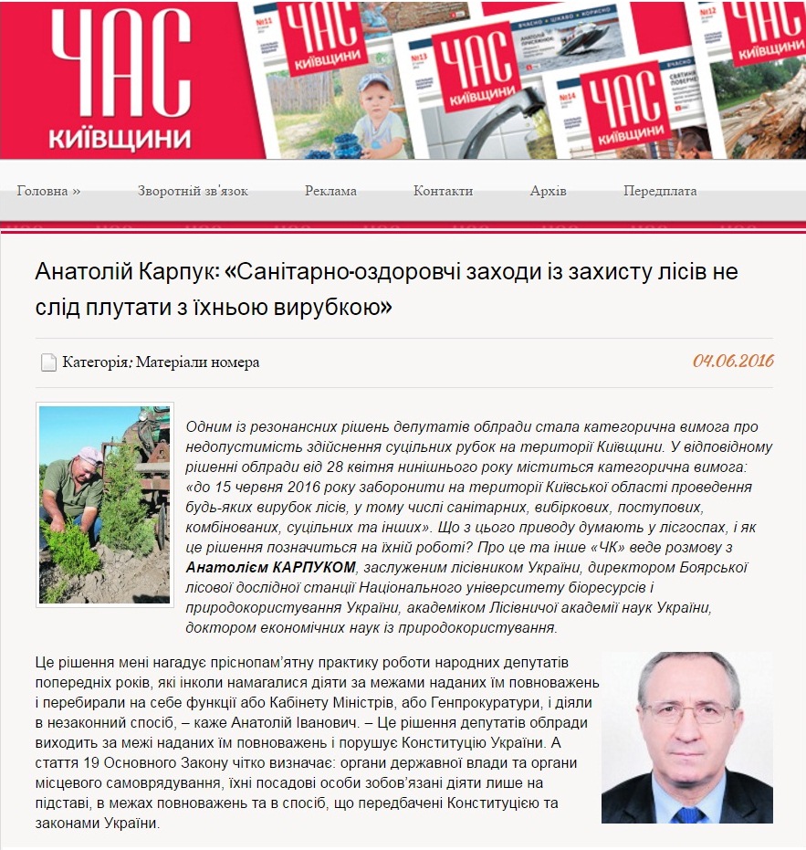 Анатолій Карпук: «Санітарно-оздоровчі заходи із захисту лісів не слід плутати з їхньою вирубкою»