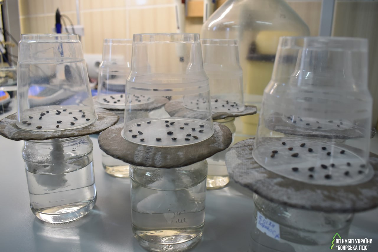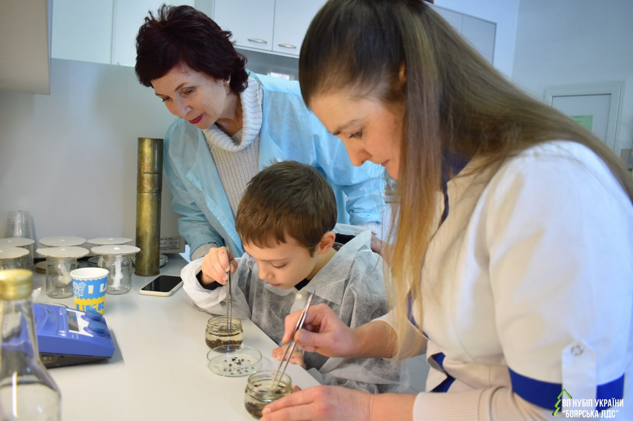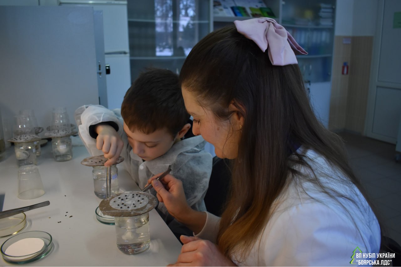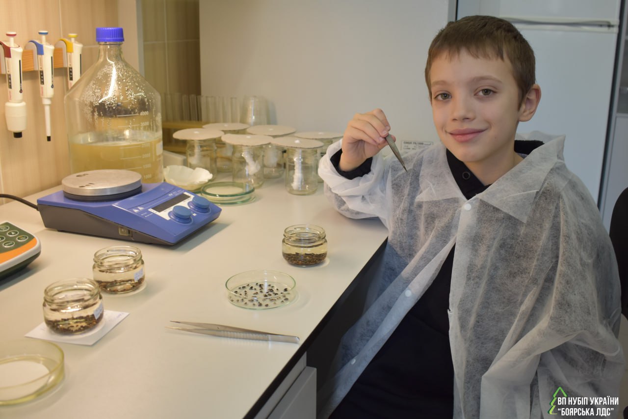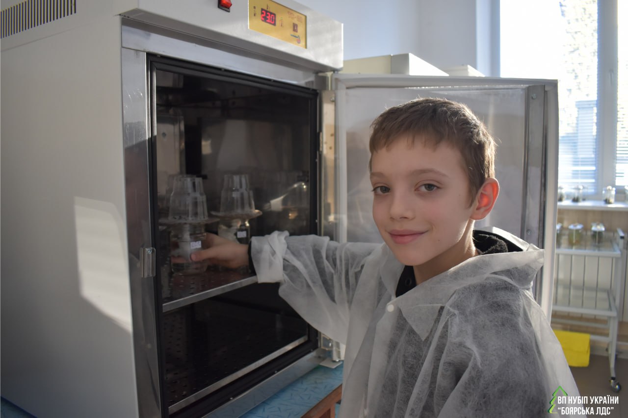 Під керівництвом завідувача лабораторії Оксани Чорнобров проведено перший етап досліду з вирощування сіянців сосни звичайної. Олександр з гуртка «Дитина і природа» Центру еколого-натуралістичної творчості "ЮННАТИ" Боярської громади заздалегідь підготував насіння сосни звичайної для унікального експерименту в лабораторії біотехнології рослин.