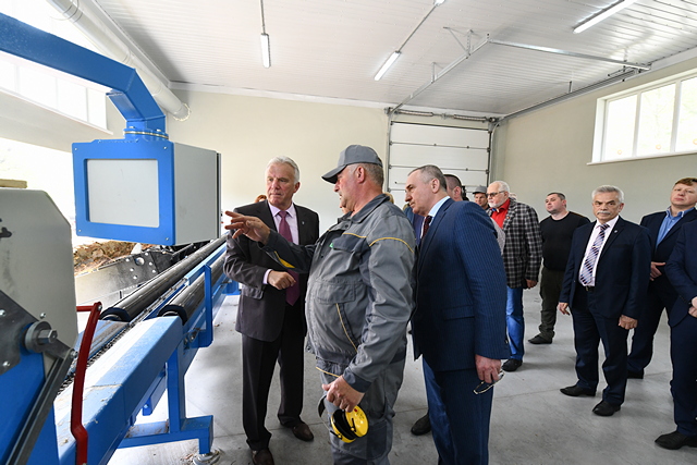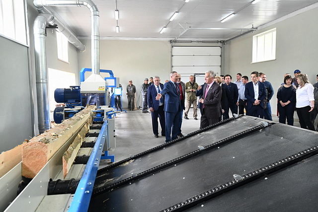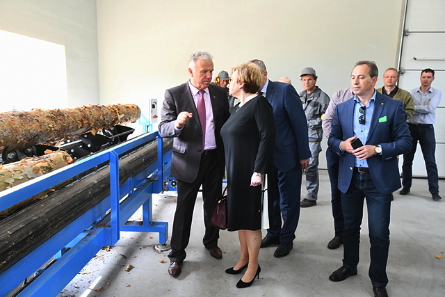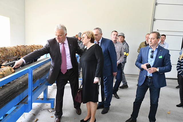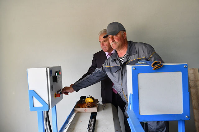 Старт лінії дали Станіслав Ніколаєнко і працівник станції Микола Палеєв. Можна було побачити, як у автоматичному режимі ліс-кругляк надходить на транспортні стрічки, з нього знімається кора і власне нарізаються дошки.