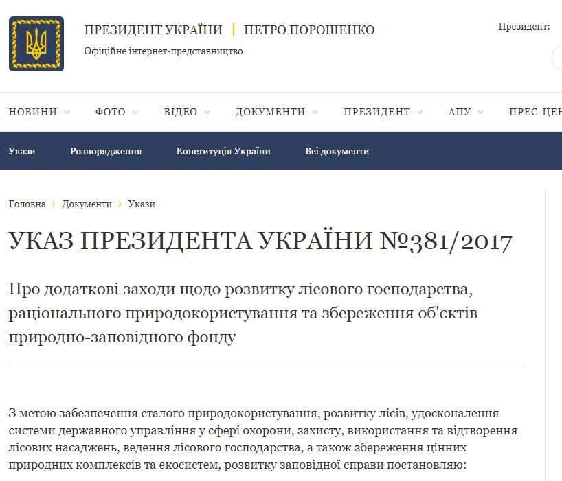УКАЗ ПРЕЗИДЕНТА УКРАЇНИ №381/2017