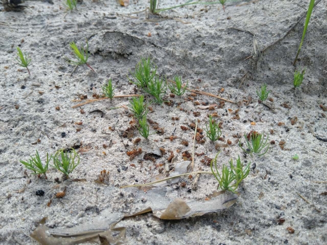 Також проросли молоді дубові паростки, які були створені шпигуванням жолудя. На даному етапі експеримент можна вважати успішним, проте ще потрібно докласти чимало зусиль, щоб зберегти молоде покоління лісу, зокрема від заглушення трав’яною рослинністю. Кінцевою метою дослідження є формування повноцінного лісового насадження із природного поновлення.