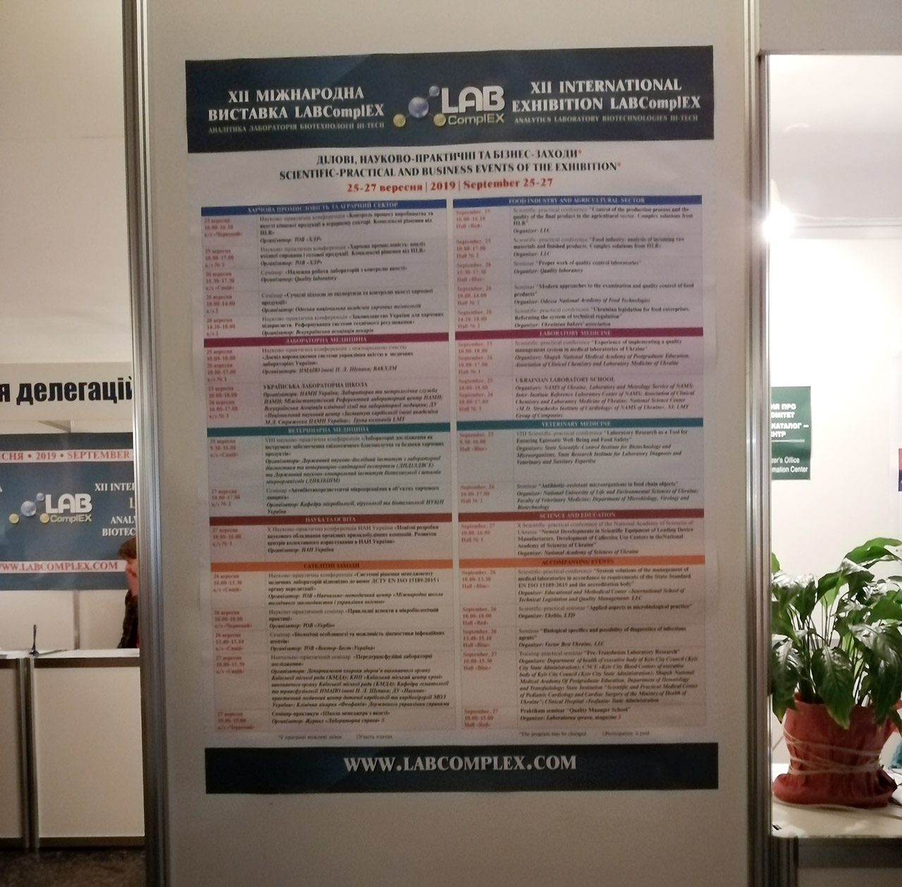 Також у рамках виставки проведено низку ділових, науково-практичних та бізнес заходів й конференцій, зокрема семінар «Належна робота лабораторій із контролю якості» (26 вересня 2019 р., 15.30−17.30). У роботі даного семінару прийняла участь завідувач науково-дослідної лабораторії біотехнології рослин ВП НУБіП України «Боярська ЛДС» Оксана Чорнобров. Організатор заходу тренінгова компанія QualityLaboratory Ltd, яка займається професійним підвищенням кваліфікації співробітників аналітичних, дослідних, науково-дослідних, контрольно-аналітичних лабораторій, медичних закладів тощо.