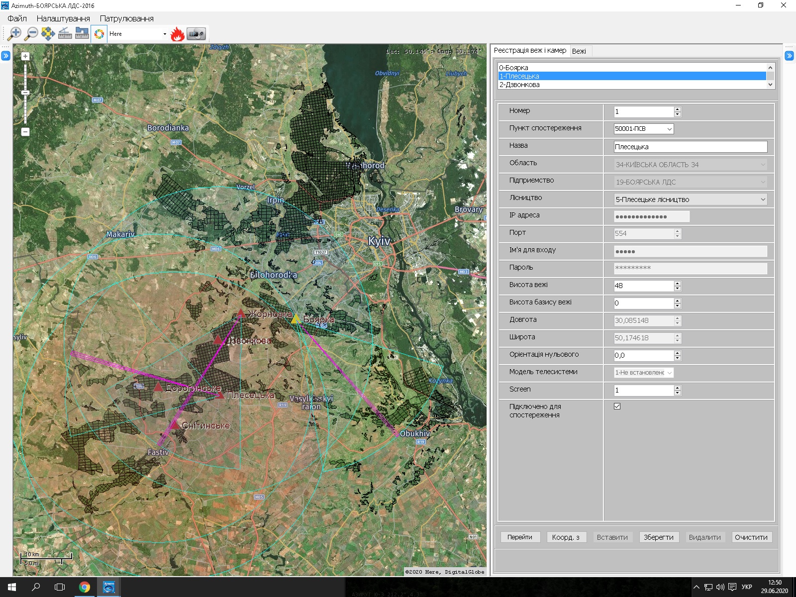 У разі виявлення пожежі або задимлення інформація з камери передає координати на електронну карту із зазначенням місця спалаху (номерів кварталу та виділу). Виявивши задимлення за допомогою телекамер, пожежний спостерігач визначає, яка машина найближче знаходиться до пожежі. У свою чергу пожежні автомобілі мають на борту навігаційні комплекти, на які автоматично передаються координати пожежі та найкоротший маршрут до неї.